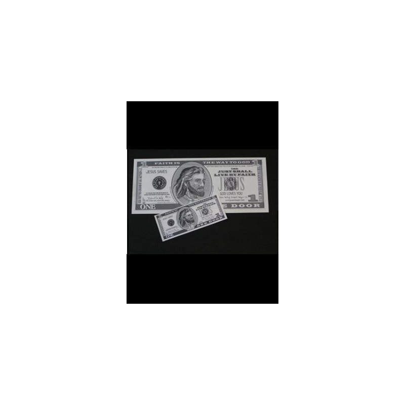 En dollar seddel i normal størrelse bliver i en nu meget større lige foran øjenene på dine tilskuere. Dette illustrerer, hvordan din penge bliver velsignet, når du giver til arbejdet i Guds rige. Du kan lave tricket på et hvilket som helst tidspunkt i dit program.