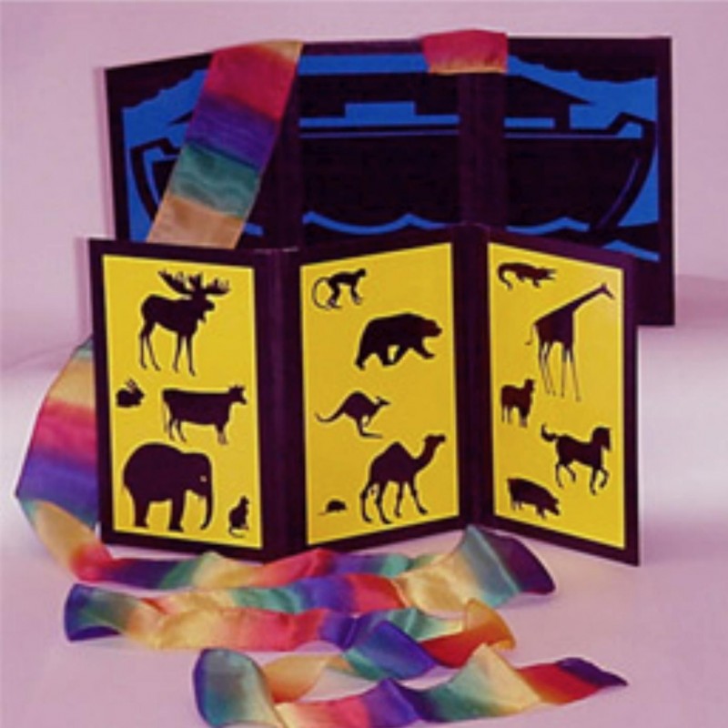 Du viser et tre-foldet billede med Noas ark på den ene side og mange dyr på den anden side. Fortæl historien om Noas trofasthed overfor Gud ved at bygge arken.